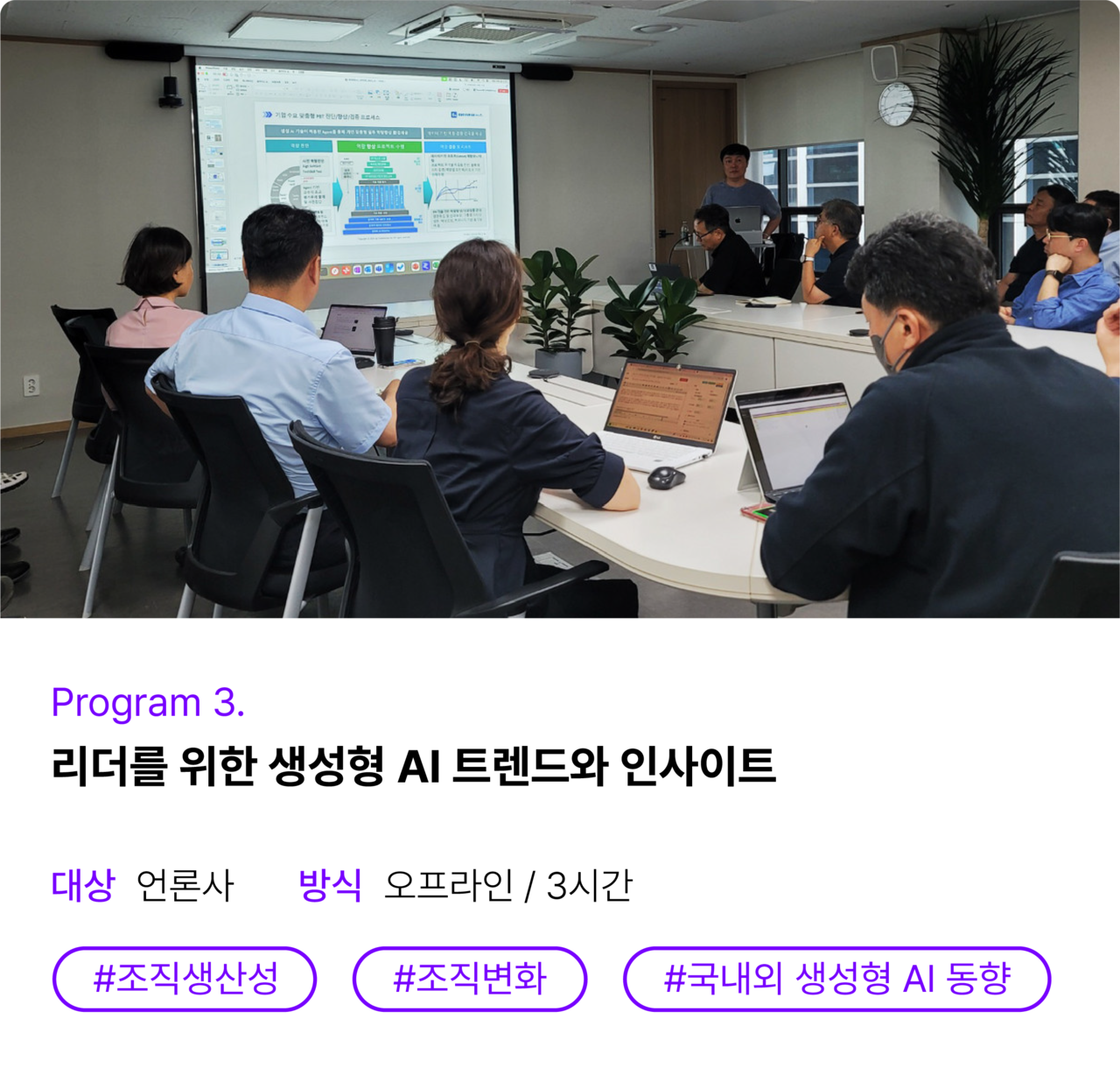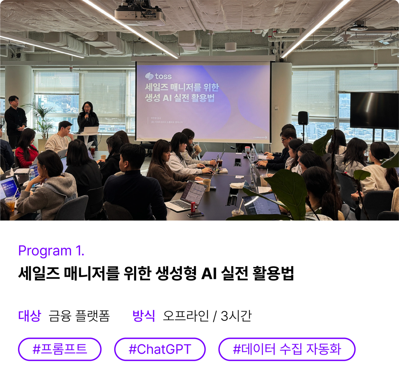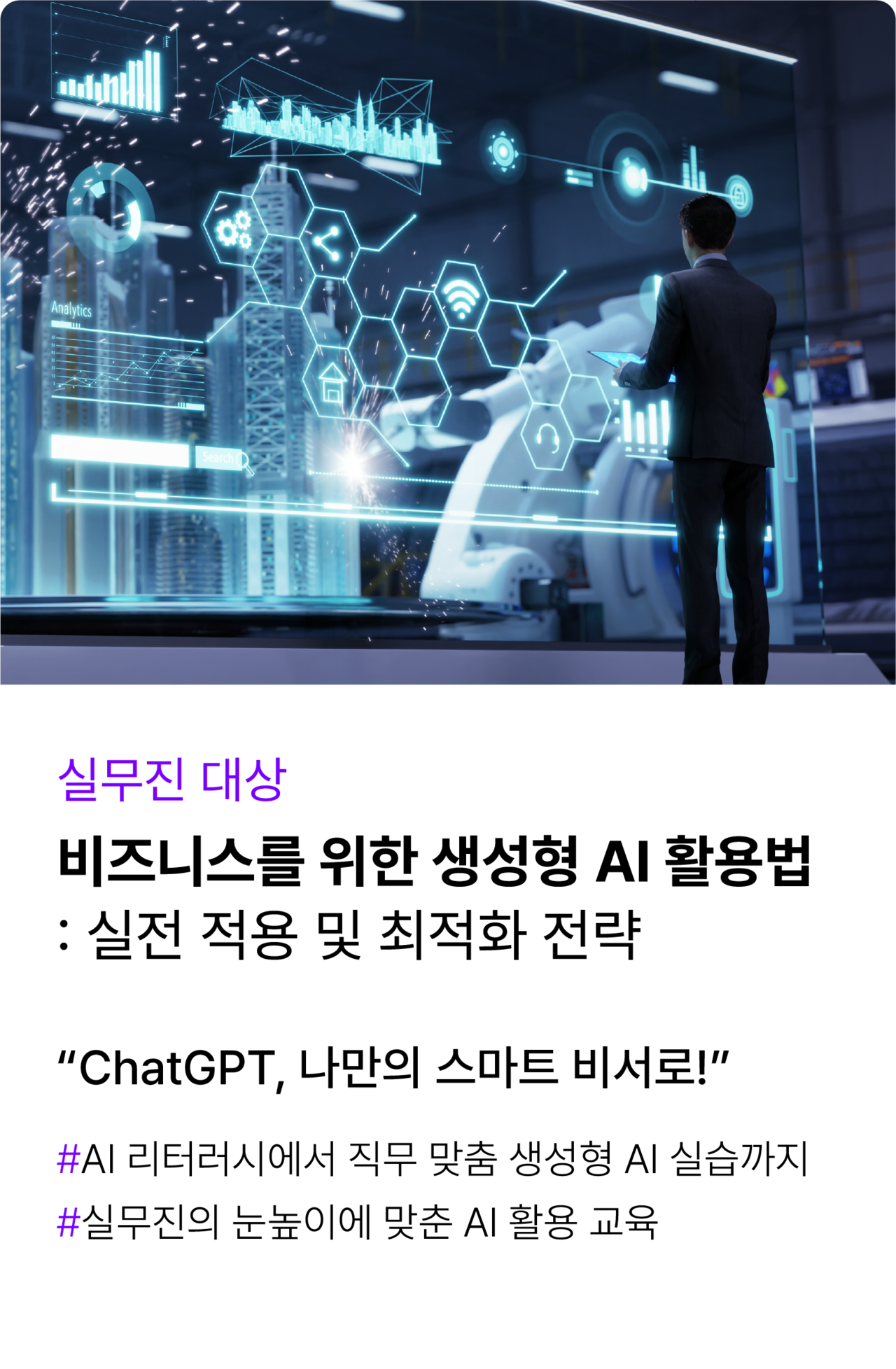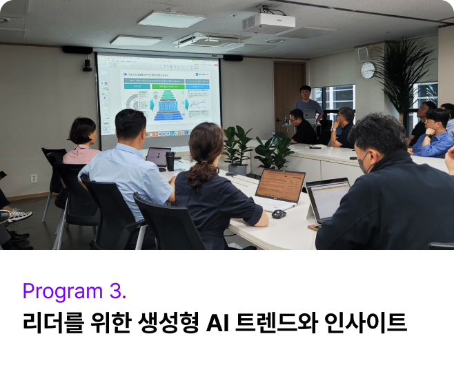 바쁜 임직원도 이동시간 제약 없이,쉽고 편리하게 실시간으로배우는 AI 강의!